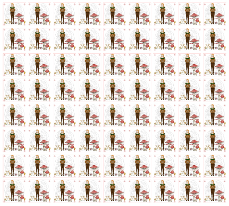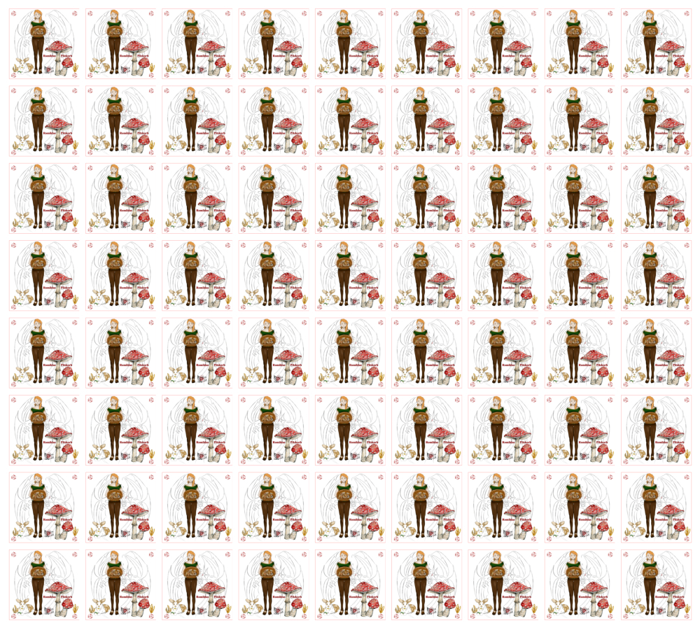 Karten mischen und auslegen. Entweder in 9 x 8 oder 6 x 12 Reihen.