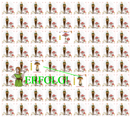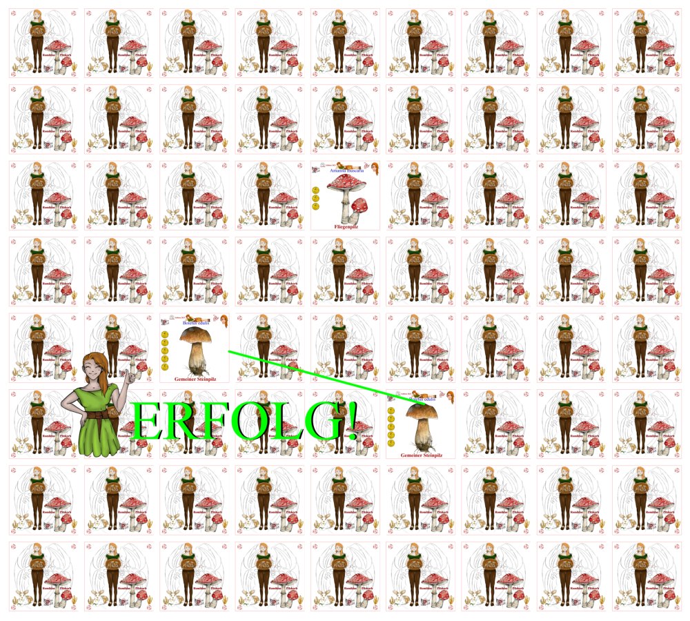ERFOLG! Du darfst das Pilzpärchen nehmen und in Deinen „Pilzkorb“ legen.
